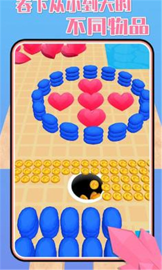 黑洞大师是一款非常魔性有趣的休闲小游戏,以黑洞吞噬为主题,游戏中,玩家操控黑洞进行吞噬,尽可能多的吞噬物品,获取更高的积分,赚取收益。将其兑换成金币之后提升自身的直径与前进速度,不断发展壮大。游戏玩法非常简单,玩家只需要控制黑洞在关卡内移动,借此吞噬掉面积比黑洞面积小的物体,而想要吞噬较大的物体,则需要不断的升级黑洞的直径。游戏提供了移动速度、直径、收益率,共三项参数,玩家可以根据自己的喜好进行培养,或是选择优先提升直径,或是选择将收益率拉满。此外,可供吞噬的道具也丰富多样,简单的碎石到标准的砖块,亮闪闪的金币到价值不菲的奇葩货币,各种东西都能被用来当作吞噬的目标。值得一提的是,为了让玩家能有更好的代入感,黑洞大师最新版采用了全新的渲染技术,将3D立体模型打造出了现在的卡通风格,游戏中的各种道具也是有着独立形象设计,除了背景外,还为每个关卡都打造了单独的场景,极大丰富了游戏色彩,可玩性非常高,还在等什么呢,快来下载体验一下吧。