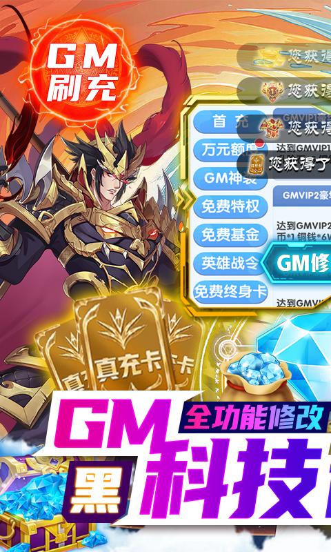 3.领取红颜获得GM修改器,GM修改器可直接替代真实充值!万元额度、首充、月卡、GM神装、基金、战令、终 身卡全部统统白送!