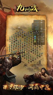 三国志之九州战是一款以三国时代文化为背景,精美细致的画面风格、真实细腻的游戏场景、恢宏壮阔的战争场面,真实还原三国地图和历史名将,实现十万部队同屏作战,结合模拟建设与战斗策略为一体的策略类手机网络游戏。