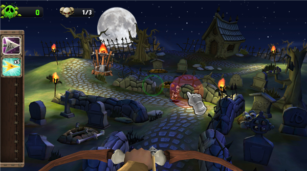 6、之后游戏中会出现骷髅,按住屏幕移动瞄准骷髅放手即可发射,点击左边的弓箭还可以切换其他的弓箭;