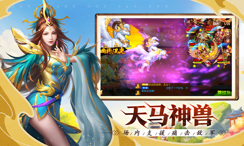 2、共同杀敌驰骋沙场,还有最华丽的战斗特效与最出色的武将立绘等你体验。