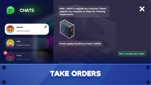 趣味休闲模拟经营系列游戏,足以应对各种问题,首先要掌握的就是合理组装零件,才能够了解每一部分的作用,每位顾客的需求都不一样,并且给出的价位都不同,玩家需要根据顾客的要求来选择各种配置。