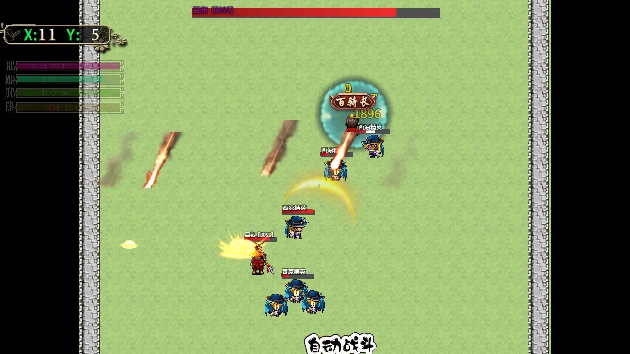 游戏是以三国为背景的割草游戏,游戏中的角色都是和三国有关的。
