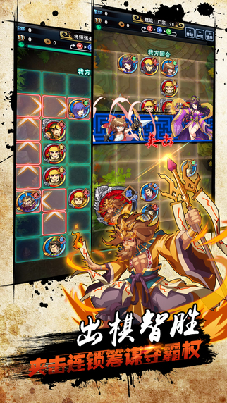 创新沙盘式策略将棋战斗模式。6X8巨大棋盘式战场,玩家通过对位置布局的把控,引导英雄相互连携走位,对敌人形成夹击、连锁之势,并合理触发多样的武将技能,将敌人吞噬殆尽。真实还原尔虞我诈、变幻莫测的三国战场,不再仅仅是冲锋陷阵的英勇无畏,更是运筹帷幄的军事博弈。攻城略地,智霸三国,尽在纵横之间。