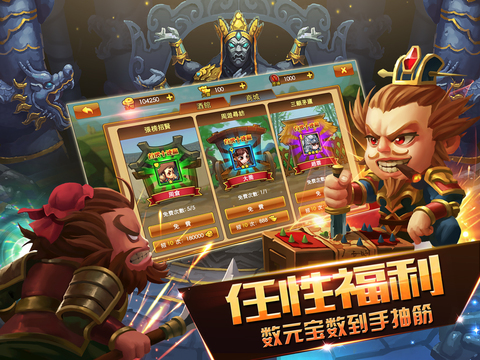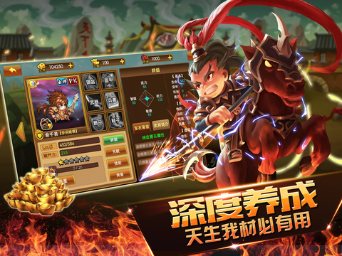 游戏内共有四大武将类型,近百名武将,可实现万种搭配。同时,多重深度培养玩法,邀你亲手打造极品神将。