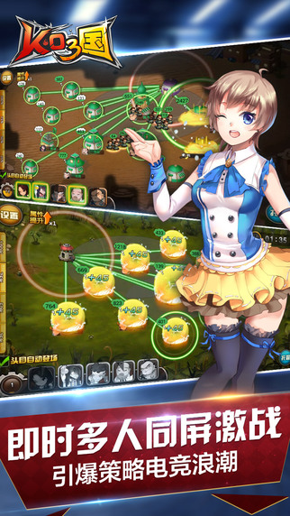 全新1V1V1大乱斗,战术称王,逆袭土豪!经典塔防元素搭配英雄培养,全新模式刷新手游感受,滑动手指,轻松调兵遣将;《KO三国》,推塔混战大乱斗,等你来战!
