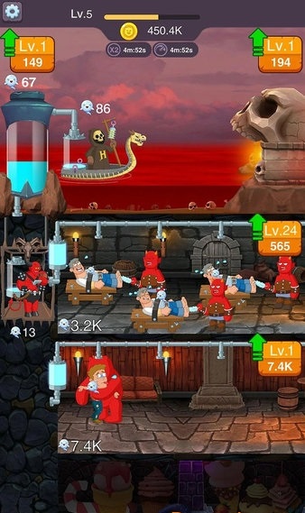 3.赚了钱之后你还可以提升自己刑具的性能,比如加快熔浆的煮沸速度。