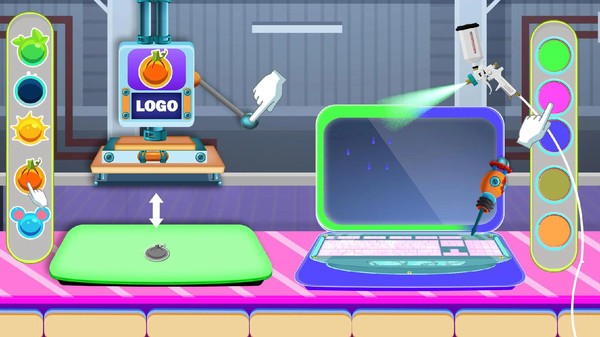 3、玩这个笔记本电脑工厂游戏,享受笔记本电脑制作,包装在传送带上的虚拟体验。