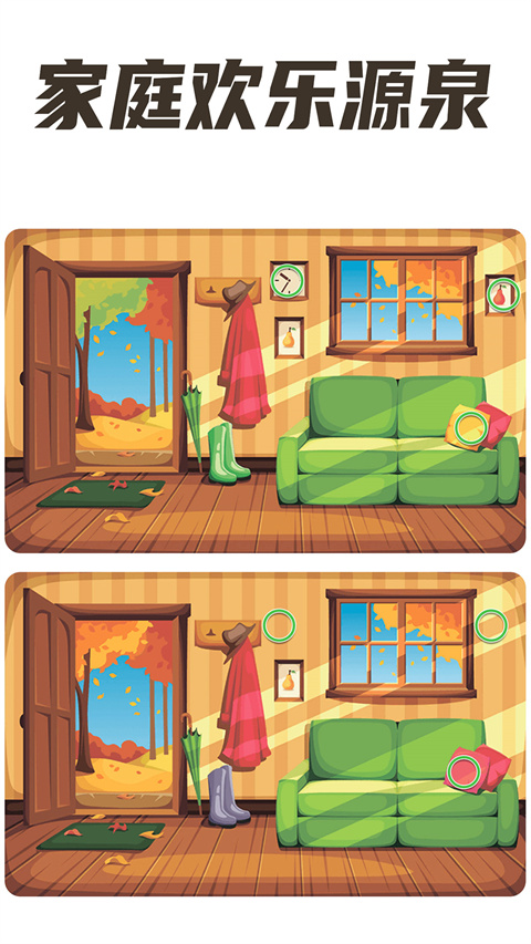全民找茬2第14关答案:墙上的画、插花、抱枕颜色、时钟、箱子