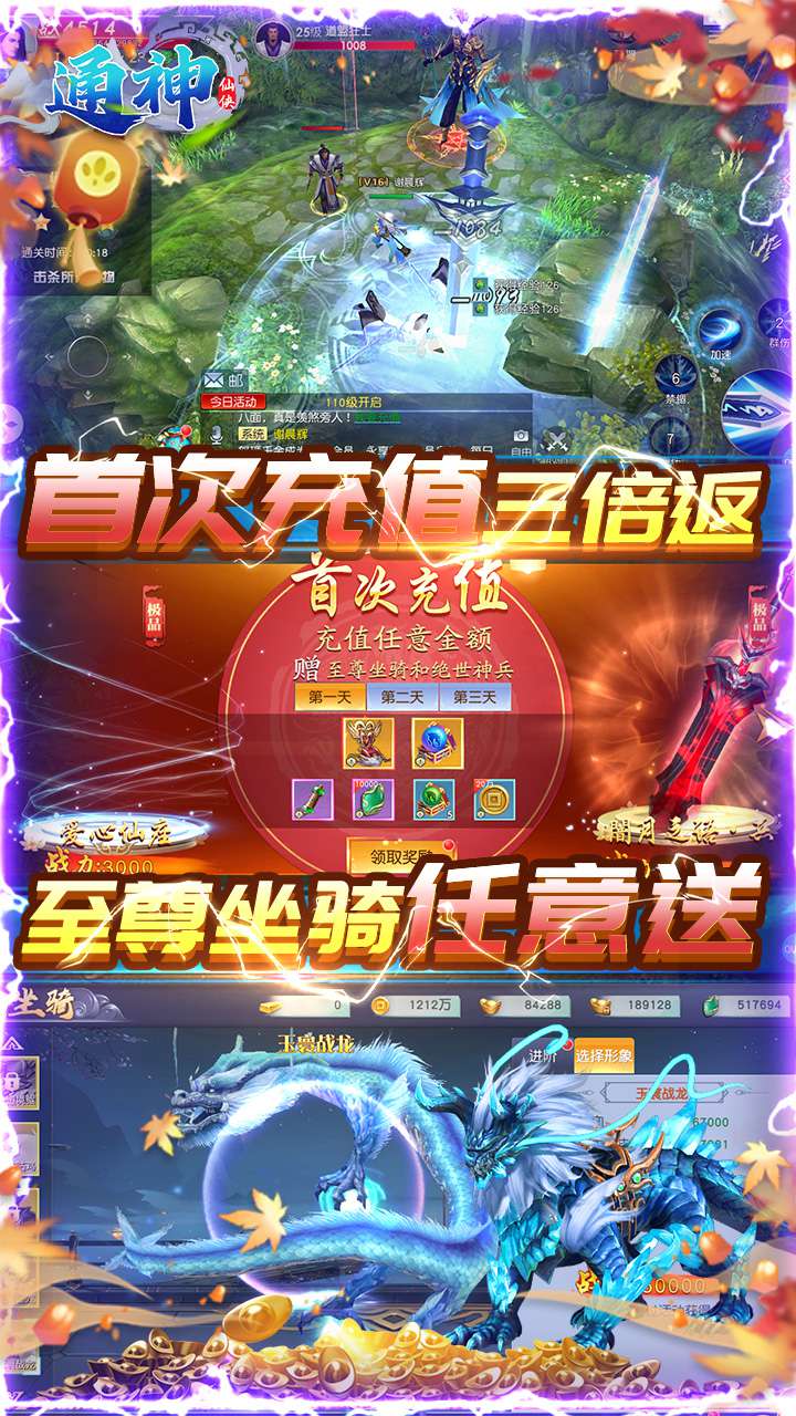 《通神(寻宝刷充值)》是一款正统玄幻仙侠3D角色扮演手游,游戏真实还原宏伟壮阔的大宋仙侠世界,全景3D无边界大地图,绚丽美景尽收眼底,野外BOSS掉落稀有装备,华丽时装装扮个性,霸气坐骑精美羽翼,还有美人相伴携手修仙,给你带来一个不一样的仙侠之旅。