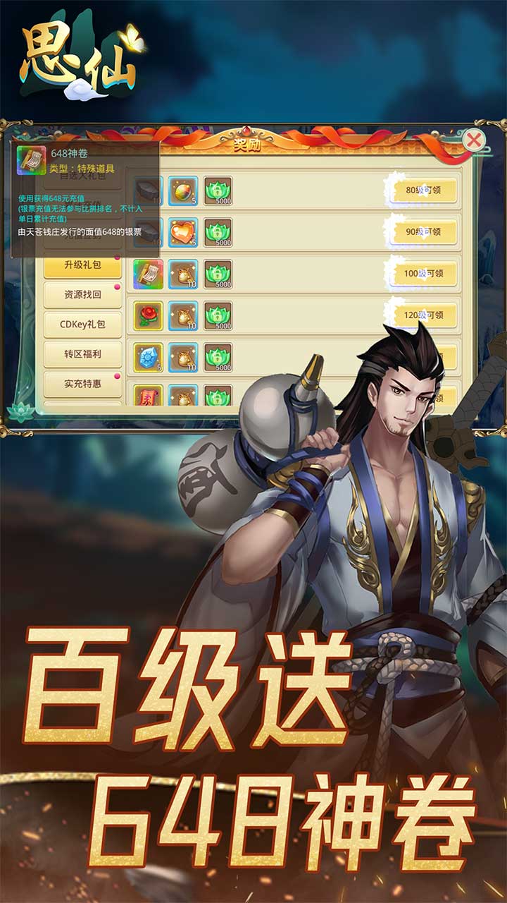 思仙满v版是一款以仙侠故事为题材的RPG手游,全新满v的福利任你领取,参与丰富活动赢得更多豪礼相送,感兴趣的玩家赶紧来下载思仙满v版试试吧。