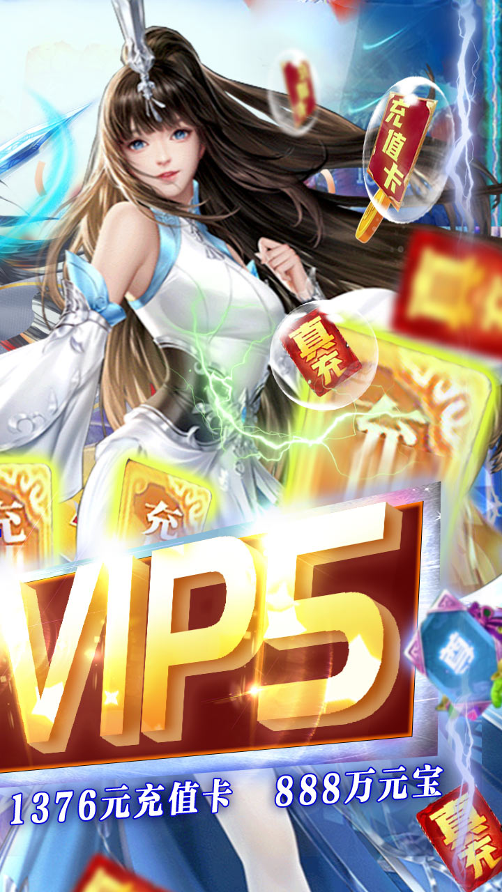 1、上线送svip5(通关第一关),1376元充值卡(邮件领取),888万元宝(邮件领取)