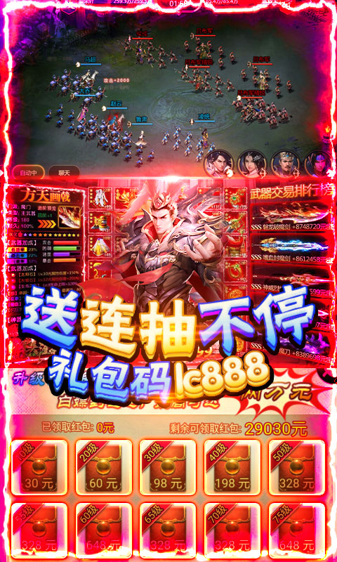 4.上线输入礼包码 lc888 领取 99连抽礼包!