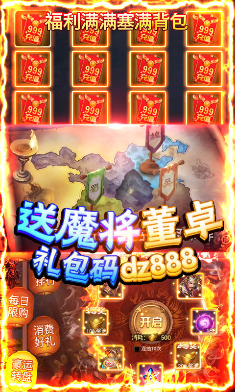 2.上线输入礼包码dz888领取魔王董卓礼包!