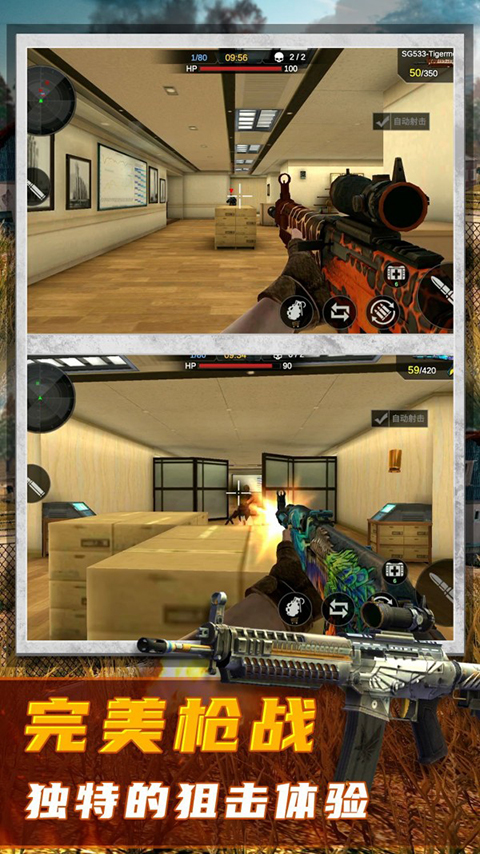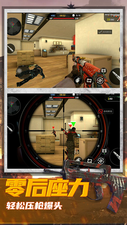 恐怖狙击求生中文版是一款真实且刺激的射击对抗型手游,该游戏建立在怪物入侵世界与恐怖分子袭击城市的背景下,玩家因此担任起了保卫世界和城市安全的责任,自愿加入保卫军的队伍当中,并在游戏内经历枪林弹雨的洗刷,不断浴血奋战来保卫世界和平与城市安全。此外,恐怖狙击求生手游在支持中文的基础上还内包含丰富的枪械道具以及玩法,让玩家可以在游戏内选择自己心爱的枪械道具和感兴趣的游戏模式。由于游戏视角是第一人称视角,这个视角可以让玩家在逼真的游戏场景和热血刺激的的枪战中游玩,帮助玩家体验到身临其境的感觉。追求热血刺激的小伙伴快来试试吧!