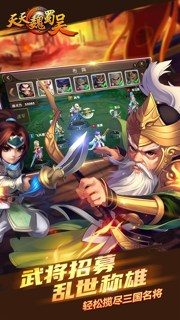 《天天魏蜀吴》是一款以三国乱世为背景的亲民策略卡牌手游。登录就送满级VIP,上线元宝88888,开局豪送一百连抽!每日数千元宝稳定收入,首周数万元宝免费派送,每日签到再送福利充值卡! 自由招募文臣武将,排兵布阵号令群雄,重温火烧赤壁、智取益州等经典战役,体验乱世称雄的策略快感!