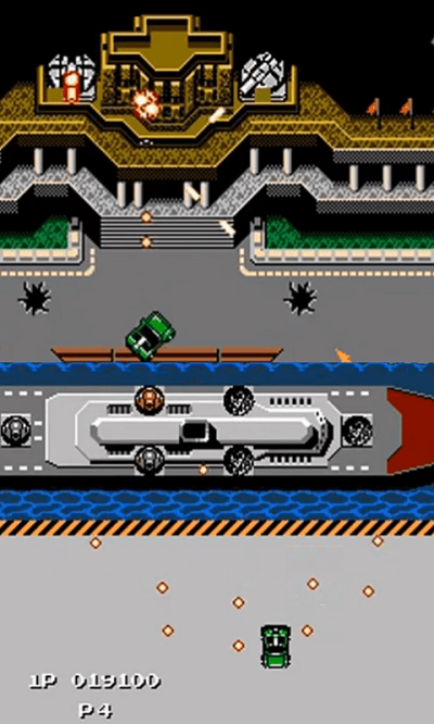 --街机版上独有两个细节,一个是坦克打掉后会有爆炸效果,玩家靠近会被余波震伤,另外救人的房子里会有人放冷枪。