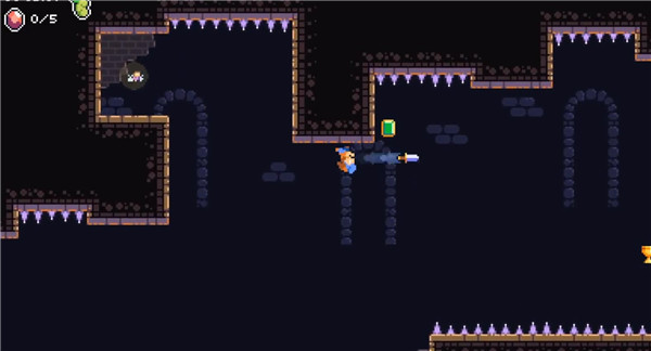匕首侠盗中文版是一款横版卷轴类像素动作冒险游戏,英文名字叫做Daggerhood,在游戏中玩家将会扮演一名身手敏捷的盗贼,你由于经常窃取贵族的财物而被放逐到一个号称永世不能逃离的洞穴中,玩家需要做的就是正是想尽一切办法逃离洞穴。该游戏和市面上一般的横版动作游戏类似,只有跳跃和攻击,在本作中攻击的方式则是向前把匕首发射出去,玩家如果在匕首还在飞的情况下再按一次发射键,就能瞬移到匕首当前的位置,非常有趣,类似火影里的飞雷神一般,但匕首有射程限制,到达一定距离就会停止并消失,因此想使用匕首瞬移的时候就得计算好时机和距离,不然很可能会掉落到陷阱里。