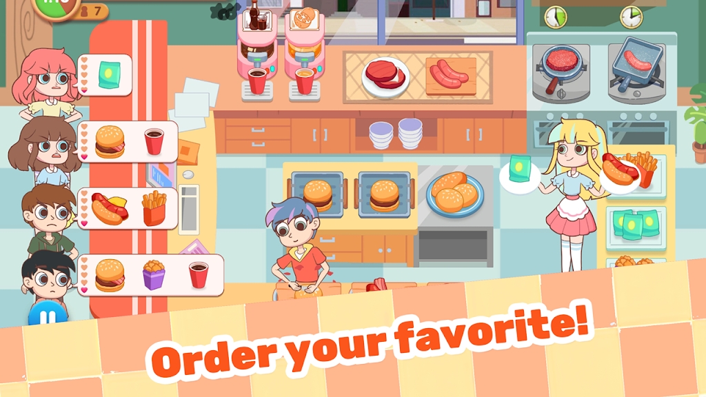 玩家可以在游戏中轻松点击屏幕开始餐厅管理和食品生产操作,帮助他们顺利地玩游戏。