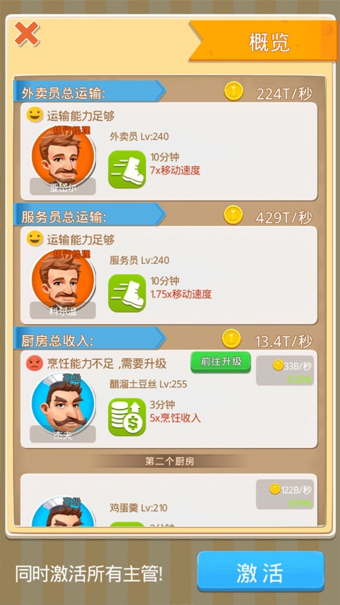 2、肥仔快乐餐厅利用服务员送餐赚取金币,收获顾客的喜爱与赞叹。