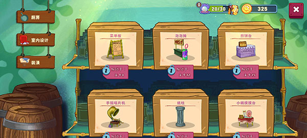 3、赚取更多的钞票来装饰并根据个人需求升级你的餐厅,这些设施能让你引来更多的客人出现。