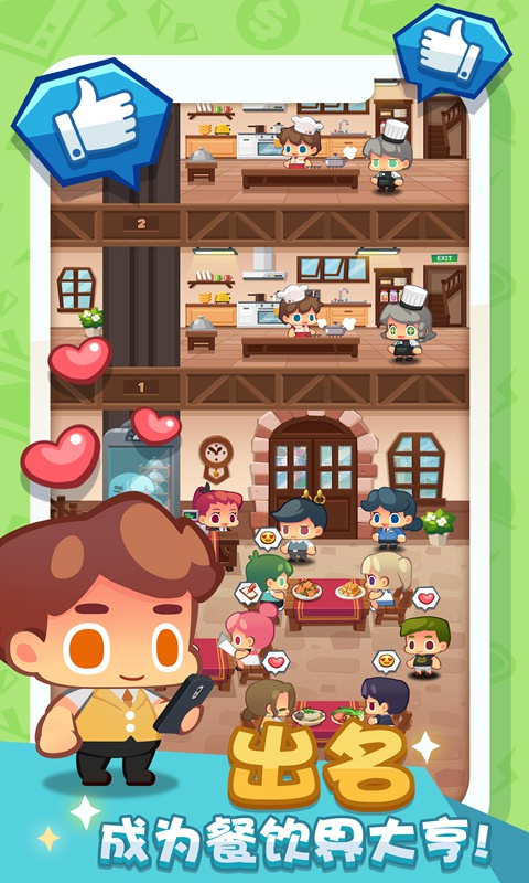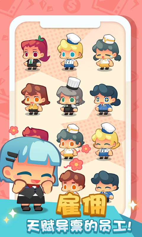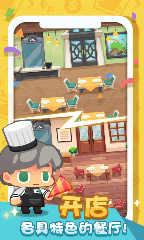 好几个不一样设计风格的美食餐厅等着你解锁,将这些高級职工一次收益手下;