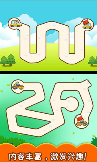2.汽车迷宫,沿着轨道路线拖动汽车,找到迷宫出口