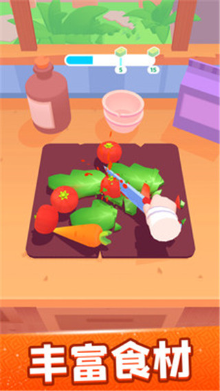3、轻松滑动你的手指来切菜,并填装到锅子中,或者是榨汁机中,由你来决定最后的成品。