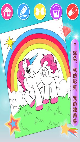 1.为天马(独角兽)涂色填色,让他充满缤纷色彩!。