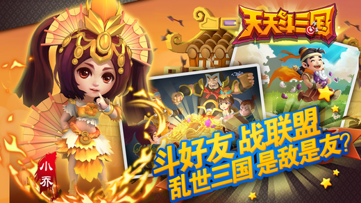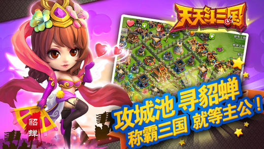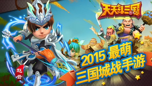 2015最萌三国城战手游《天天斗三国》震撼来袭!三国传奇武将,为主公效力!重现三国著名战役,主公是否能运筹帷幄,改写战局?好友之间亦敌亦友,既能相互掠夺资源也能结盟求援。富有特色的城池建设,极易上手的战斗模式。称霸三国,就等主公!