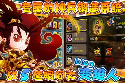武将训练、装备锻造、专属武将神器的合成,打造出强力的武将为您助阵。