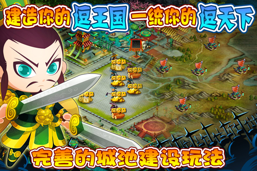 《逗比三国》是一款三国题材为背景的战棋风格,轻度策略,养成类社交手机游戏。游戏通过经营自己的城池,升级城池内建筑物等级,招募并训练强大的武将,验三国时代英雄人物的相识、激战、胜利,演绎史诗般的三国战场,在游戏系统上显示出了自己“逗比”的一面。除了我们所熟知的三国历史和人物之外,在剧情方面,游戏融入了大量的野史内容,让玩家能够体验到正史之外的那些离奇传说。一些鲜为人知、光怪陆离的野史会重新唤起大家对于“三国”的热情!