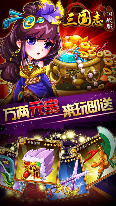 免费下载 大小:66.91MB 下载:348次 三国志国战版 三国模拟类游戏推荐 平 台:安卓 分 类:策略塔防 大 小:66.91MB 评 分: 语 言:中文 发 布:安卓狗 浏 览:348次 更 新:2026-04-18 08:15:47 手机扫码免费下载 纠错留言 #三国志国战版介绍 三国志国战版是一款卡牌策略类型的手机网络游戏,以三国历时为背景,卡牌+国战玩法为核心,Q版卡通的画面。玩家通过征讨、擂台、通天塔、国战、铜雀台等玩法与其他玩家竞技,也可以重新领略三国历史的魅力。完美的武将收集养成系统,独特的国战官职系统,多变的情谊组合系统,公平的竞技打擂系统,丰富的三国战役系统,让你流连忘返。那一天恍惚里美髯、绿袍、赤兔和82斤的青龙偃月刀,天神一般登场,您的三国由此开始。 #三国志国战版截图