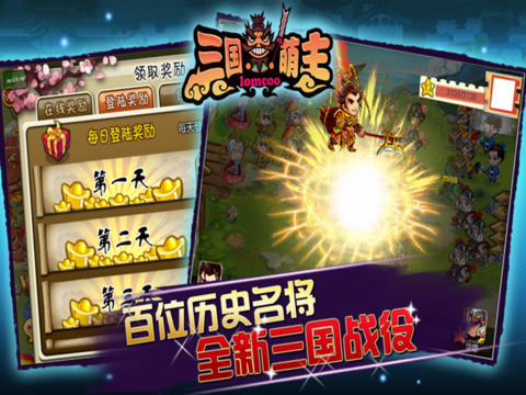 《三国萌主》是一款多人在线Q版3D休闲策略型手机游戏,游戏界面简洁清新,人物设定可爱搞笑,战斗场面紧张刺激。游戏以三国为背景,玩家扮演国君进行一系列简单有趣的操作,如:城市建设、招募武将、训练兵种、掠夺征服、竞技切磋等。游戏注重娱乐性和策略性。兵种具有各自不同的特殊属性且相互影响,布阵的精密程度会影响到整场战斗的胜负,具有很强的策略性。