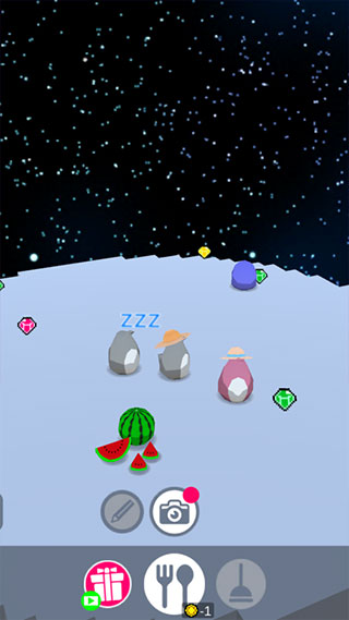 2、你可以给小企鹅们投食,帮助他们打扫卫生,小企鹅们会吐出珠宝来回报你!