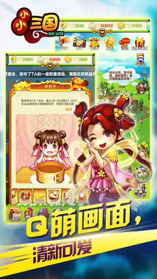 小小三国是一款休闲策略城战手游,建设强大领地,培养超级武将,训练特色军团,玩转风云三国。Q萌画面赏心悦目,休闲玩法轻松减压,让你在学习工作之余得到身心放松。