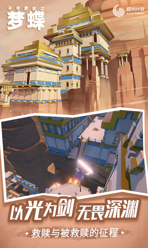 不可思议之梦蝶游戏完整版是由极光计划发行,队友游戏开发的一款3D解谜冒险游戏,其英文名字叫IncredibleMandy。相较于传统的解谜游戏而言,游戏为玩家提供了一段更为完整的冒险与故事体验,塑造了8个风格不同的唯美关卡场景,从群山之巅到峡谷深处,从大海之滨到隐秘回廊,每个关卡都有着独特的谜题、BOSS来供玩家探索、解谜与战斗。游戏以剑为核心元素,你可以随时在手中召唤出你的剑,通过挥砍、刺入地面,甚至注入能量来引发连环爆炸,以此触发关卡中的各个机关来开辟道路。游戏的关卡设计并不复杂,大多都有着相当直观的逻辑提示,并且每个关卡都有一个全新的谜题形式,让整个流程并不会显得重复与同质化,让玩家可以体验到最特别的解谜游戏。
