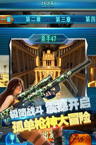 地球末世的年代,传言地球自转将受到人类核爆试验的严重破坏,作为人类联合军工体的特勤狙击手,必须立即执行代号47的一系列军事拯救任务,这是世界生存的唯一希望。代号47的末世狙击手将依次参加刺客联盟、谍影神枪、海豹突击、生死狙击、雪地救援、孤岛危机、城市猎狐、核弹拯救总共八大关四十小关的狙击任务,充分利用手里的多倍放大瞄准镜+红外搜索+高射速伤害等组装的狙击枪,完成人类乃至地球母亲寄予希望的历程。敌人那么多,任你去消灭!记得依次完成历练、求生、救援、对抗及拯救的终极使命!