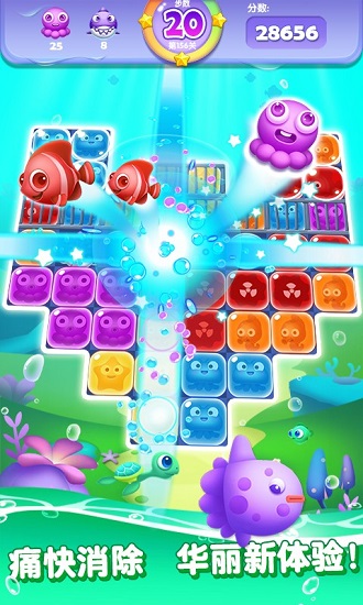 - 游戏以点消为基础,操作简单易上手,结合海洋主题,画面风格Q萌。