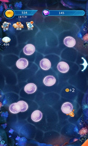 阳光养鱼达人中玩家扮演一个鱼塘主,饲养不同种类的鱼获得收益,通过合成小鱼苗不断培育出新的类型的鱼,最终发家致富,走上人生巅峰。有时也会路过天价锦鲤,记得用炮台把它捕捉回家