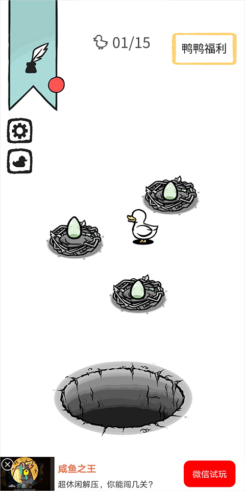 2、非常精致的游戏画风,鸭子造型独特新颖,清新简洁的游戏画面。