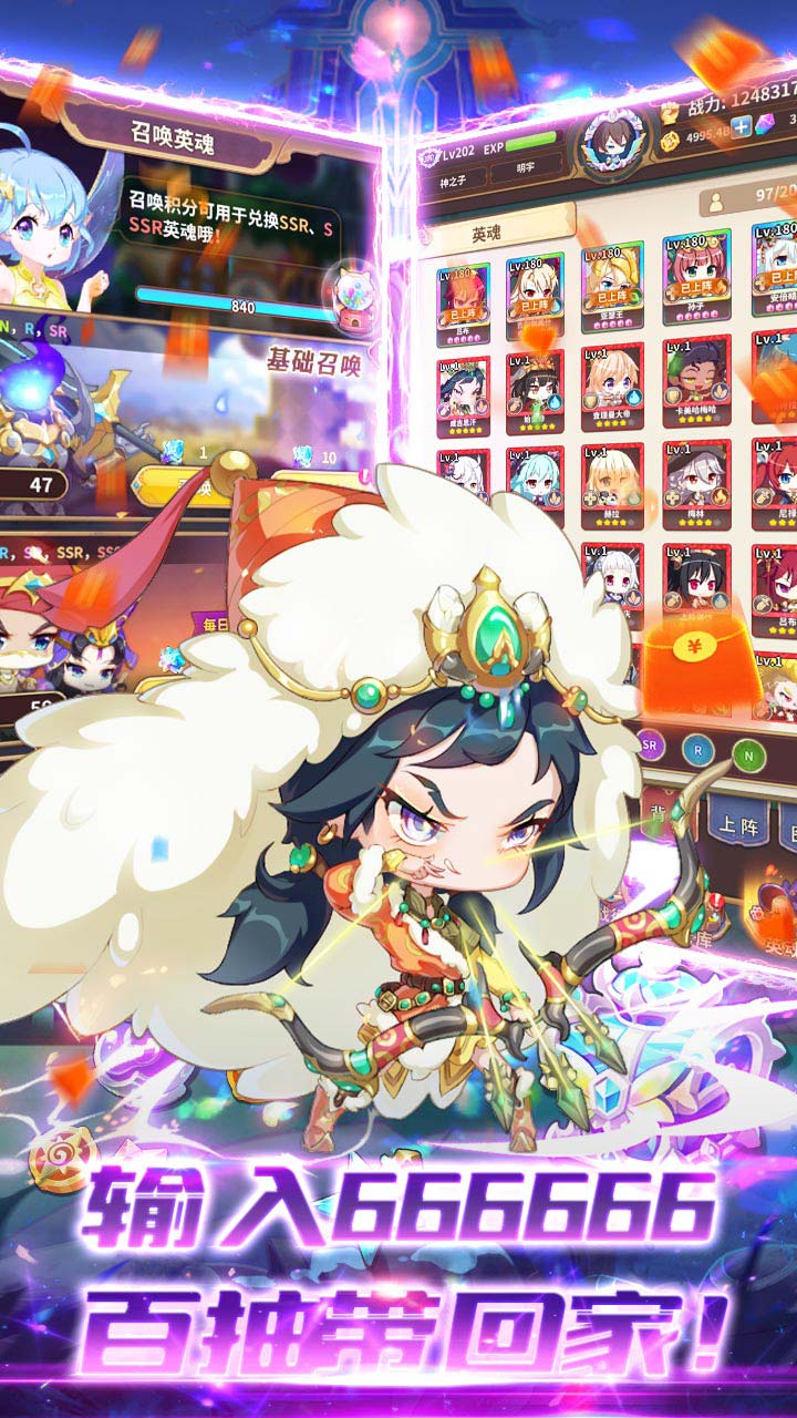 众神召唤(上线送百抽)主打休闲放置收益玩法,战斗自动释放技能,不需手操,只需手动点开始结束,非常方便。但为了丰富游戏性,游戏内置了爬塔和挖矿玩法。玩家可以通过副本挑战一层层往上爬,越高收益越大。俗话说:大丈夫应当能伸能屈,上可爬塔下可挖矿。玩家可以通过秘境探索(俗称挖矿)来获取资源,挖矿拥有大量的随机性,通过仍骰子进行位置的移动,就像大富翁一样,你永远不知道你的骰子点数是什么,也不知道下一秒会发生什么,是捡到稀有装备,解锁英魂碎片?还是踩到陷阱上DEBUFF?一切靠你运气。