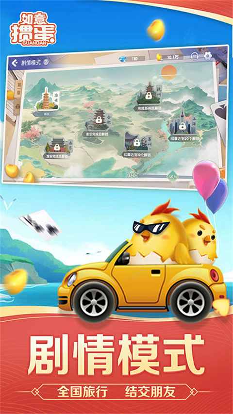 玩家可体验剧情模式,跟着伙伴去全国各地旅游,接到不同的挑战,与伙伴们过关斩将,完成一场真正的掼蛋之旅!