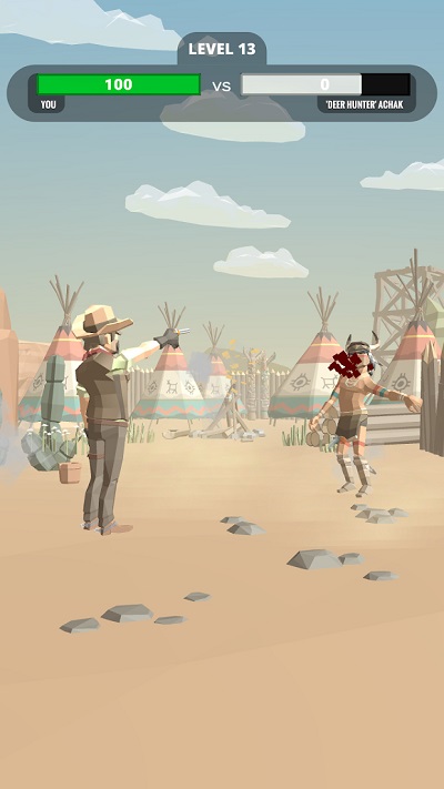 3.牛仔决战玩家在游戏中可以利用关卡中的地形让子弹弹射到对方牛仔。