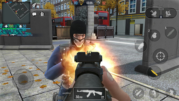 1、操作玩法左侧遥感,右侧射击,瞄准、换弹、投雷、武器更换等一系列功能及操作中规中矩,适合绝大多数人的习惯,在一局有限的时间限定条件下,尽可能的击杀敌对势力获得积分,死后可以从基地复活,可与队友协同作战。