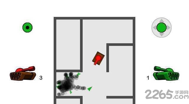 玩家只要朝着对方开炮即可。不过需要注意一点,墙壁是可以反弹子弹的,千万要选好角度,要不然会自杀的。还可以一下子发出多发子弹哦。比较考验玩家技巧性的坦克对战类射击游戏。简约的坦克对战游戏,可以单人,也可以双人对战。游戏的地图很简约,在一个小迷宫(已经算不上迷宫了)里。