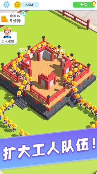 1、下载游戏后,安排工人搬砖建房子;