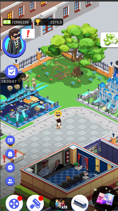 3、非常幽默的游戏画风,卡通场景小朋友也很喜欢,在全国开设电影院,成为影院大亨。