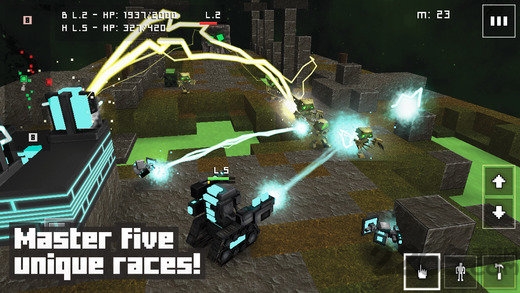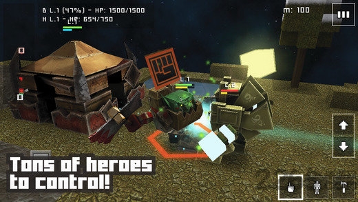 游戏中共有4个种族,每个种族包含3个英雄,玩家选择英雄组成小队进攻敌人的基地,不过玩家不能直接控制这些英雄,所有英雄的反应和表现取决于玩家给他们配备的装备,这就要求你利用沙盒建造元素为他们打造最棒的装备!