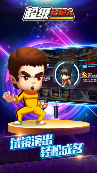 根据同名电影改编而成,题材玩法都十分新颖,一开场就会出现众多当红明星任你选择签约,还会有明星简介,让你更了解明星讯息。明星签约后,作为老板的你要极力将他们培养、打造成闪闪发光巨星,PK竞争在所难免,良好的策略是成功的关键哟。